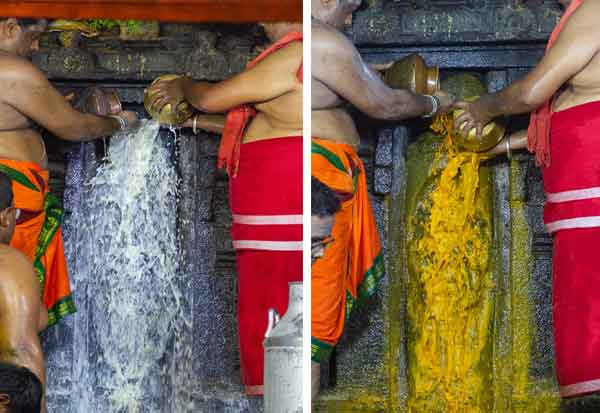 மகா சிவராத்திரி முன்னிட்டு, திருவண்ணாமலை அருணாசலேஸ்வரர் கோவில், மூலவர் சன்னதி பின்னால் உள்ள லிங்கோத் பவருக்கு நடந்த பால் அபிஷேகம் மற்றும் சந்தன அபிஷேகம்