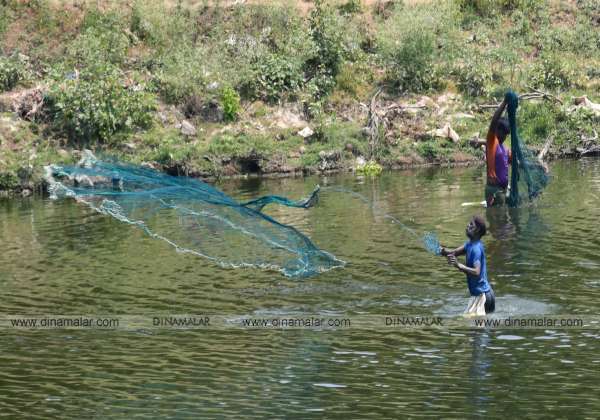 அன்றாட பிழைப்பிற்காக வலையில் மீன்கள் மாட்டி விடாதா என ஏக்கத்துடன் அடையாறு ஆற்றில் வலையை வீசும் மீனவர்கள்.இடம்: மணப்பாக்கம், சென்னை.