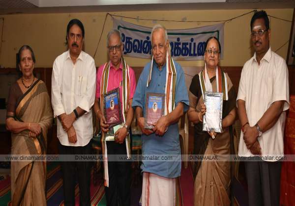 அமரர் தேவன் அறக்கட்டளை சார்பில் விருது வழங்கும் விழா சென்னை மயிலாப்பூரில் நடந்தது. இதில் மேடையில் (இடமிருந்து - வலம்) அமரர் தேவன் அறக்கட்டளையின் அறங்காவலர் சாந்தி லட்சுமணன், எழுத்தாளர் ரகுநாதன், விருது பெற்ற எழுத்தாளர்கள் பாஸ்கரன், நாவலர் நாராயணன், காந்தி லட்சுமி சந்திரமவுலி மற்றும் கலைமகள் ஆசிரியர் கீழாம்பூர் சங்கர சுப்பிரமணியன்.