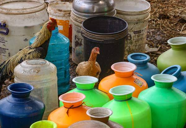 தண்ணீர் இருக்கிறதா என தேடும் கோழிகள், இடம்: பெங்களூரு.
