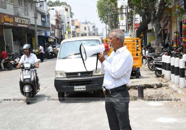திருப்பூர் பழைய மார்கெட் வீதியில், கடை உரிமையாளர்கள் ரோட்டை ஆக்கிரமித்து பொருட்கள் வைத்துள்ளதாக, தினமலர் நாளிதழில் படத்துடன் செய்தி வெளியானது. செய்தி எதிரொலியாக, மைக் மூலம் ஆக்கிரமிப்புகளை அகற்றுமாறு அறிவிப்பு வழங்கினர்.