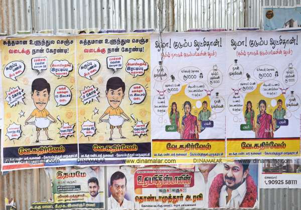 தி.மு.க., குடும்ப அரசியல் விமர்சனத்திற்கு பதிலடி தரும் வகையில் கோவையில் ஒட்டப்பட்டுள்ள போஸ்டர்கள்.