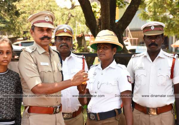 கடலூரில் வெயிலை சமாளிக்க போக்குவரத்து போலீசாருக்கு எஸ்.பி.ராஜராம் தர்மாகோல் தோப்பியை வழங்கினார்.