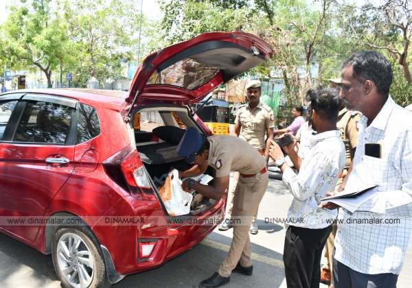 தேர்தல் தேதி அறிவிப்பை தொடர்ந்து, தீவிர சோதனையில் ஈடுபட்ட தேர்தல் பறக்கும் படையினர்.இடம் : ஷெனாய் நகர்