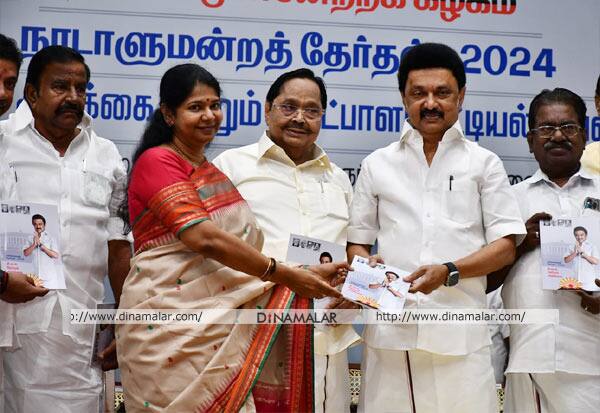 தி.மு.க.,வின் தேர்தல் அறிக்கையை முதல்வர் ஸ்டாலின் வெளியிட்டார்.