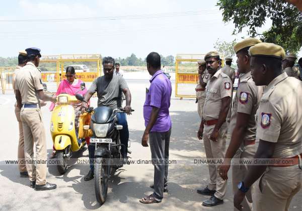 வேட்பு மனு தாக்கல் முன்னிட்டு கடலூர் கலெக்டர் அலுவலகம் வரும் ஊழியர் மற்றும் பொதுமக்களை போலீசார் சோதனைக்கு பின்னே அனுமதிக்கப்படுகின்றனர்.