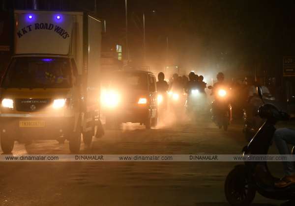 திருப்பூர், குமார் நகர் சிக்னலில் குழாய் பதிக்கும் பணிக்கு ரோடு தோண்டப்பட்டு உள்ளதால் பின்னால் வரும் வாகனங்கள் தெரியாத அளவிற்கு புழுதி கிளம்புகிறது.