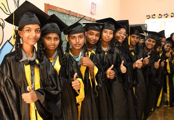 கோவை மசக்காளிபாளையம் மாநகராட்சி நடுநிலைப் பள்ளியில் பட்டமளிப்பு விழா நடந்தது. இதில் பட்டமளிப்பு விழா ஆடையில் உற்சாகமாய் போஸ் கொடுத்த மாணவிகள்.