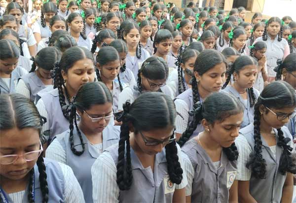 10ம் வகுப்பு பொது தேர்வு எழுதுவதற்கு முன் மாணவிகள் கடவுளை வழிபாடு செய்து விட்டு தேர்வு அறைக்கு சென்றனர். இடம்: சிவகங்கை அரசு பெண்கள் மேல்நிலைப்பள்ளி.