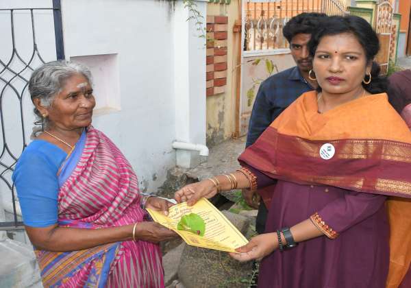 லோக்சபா தேர்தலில் 100 சதவீதம் ஓட்டுப்பதிவை வலியுறுத்தி தேனியில் குறைந்த ஓட்டுப்பதிவான பகுதியில் தேர்தல் அலுவலர் ஷஜீவனா வாக்காளர்களின் வீடுகளுக்கு சென்று விழிப்புணர்வு அழைப்பிதழ் வழங்கினார்.