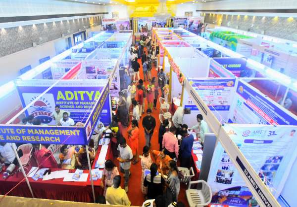 புதுச்சேரி தினமலர் நாளிதழ் மற்றும் கோவை ஸ்ரீ ராமகிருஷ்ணா கல்வி நிறுவனங்கள் சார்பில் ஜெயராம் திருமண நிலையத்தில் துவங்கிய தினமலர் வழிகாட்டி நிகழ்ச்சியில் கல்லூரி ஸ்டால் அரங்கை பார்வையிடும் பார்வையாளர்கள்.