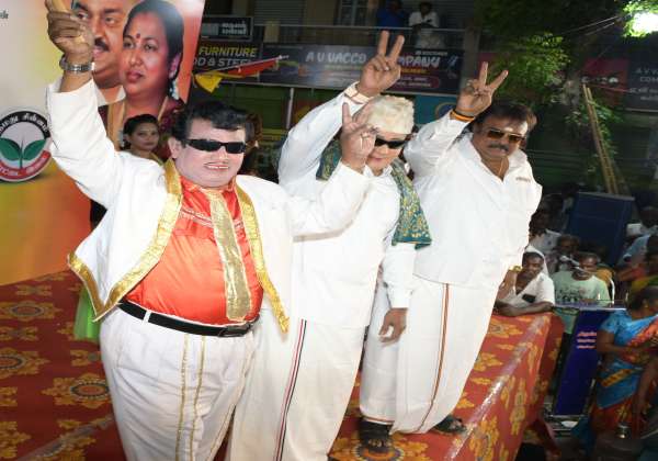திருப்பூர் அதிமுக வேட்பாளர் அருணாசலத்தை ஆதரித்து, தேமுதிக பொது செயலாளர் பிரேமலதா, யூனியன் மில் ரோட்டில் பிரச்சாரம் செய்தார். அவர் வருவதற்கு முன்பு, விஜயகாந்த், எம். ஜி. ஆர், வேடமணிந்தவர்கள் மேடையில் நின்று கட்சியினரை உற்சாகபடுத்தி கொண்டிருந்தனர்.