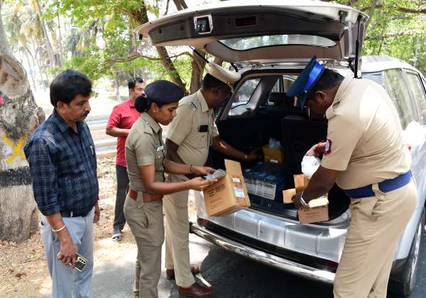 சட்டமன்றத் தேர்தலை முன்னிட்டு தேர்தல் அதிகாரிகள் வாகனங்களை தீவிர சோதனை நடத்தினர் இடம்: தாம்பரம் வேளச்சேரி சாலை தாம்பரம்