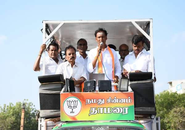 உடுமலை குடிமங்கலத்தில் பொள்ளாச்சி லோக்சபா தொகுதி பா.ஜ. கட்சி வேட்பாளர் வசந்தராஜன் ஓட்டு கேட்டு தேர்தல் பிரசாரம் செய்தார்.