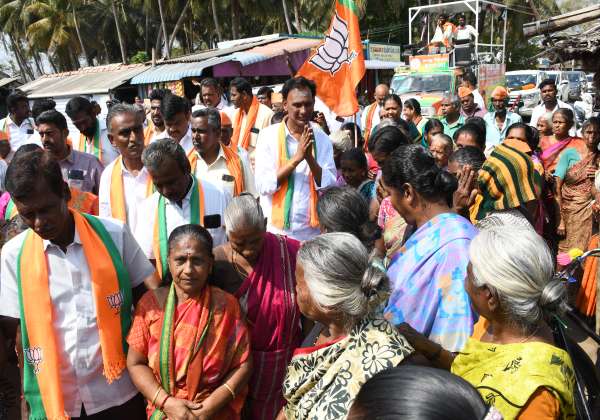 உடுமலை பூளவாடியில் பொள்ளாச்சி லோக்சபா தொகுதி பா.ஜ.கட்சி வேட்பாளர் வசந்தராஜன் பெண்களிடம் வாக்கு கேட்டு தேர்தல் பிரச்சாரம் செய்தார்.