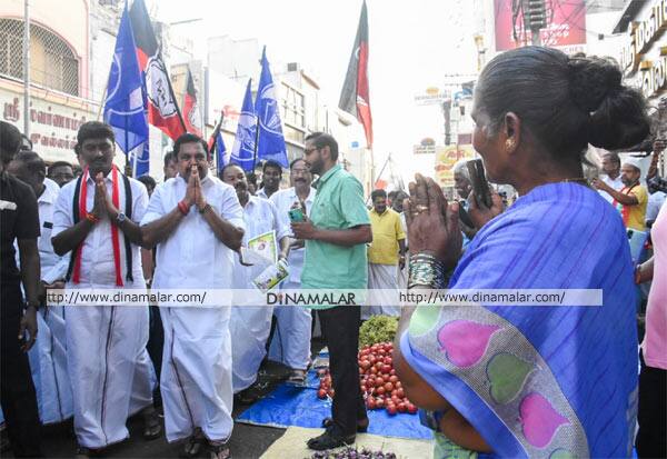 லோக்சபா தேர்தலை முன்னிட்டு சேலம் கடைவீதிகளில் காய்கறி வியாபாரிகள் இடையே அ.தி.மு.க., வேட்பாளர் விக்னேஷை ஆதரித்து ஓட்டு சேகரித்த அதிமுக பொது செயலாளர் இ.பி. எஸ்.,