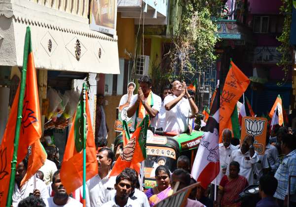 சென்னை அமைந்தகரை பகுதியில் மத்திய சென்னை பா.ஜ வேட்பாளர் வினோஜ், தீவிர ஓட்டு சேகரிப்பில் ஈடுபட்டார்