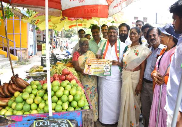பாஜ., வேட்பாளர் நமச்சிவாயத்தை ஆதரித்து இந்திரா நகர் தொகுதியில் அரசு கொறடா ஆறுமுகம் வியாபாரிகளிடம் ஓட்டு கேட்டார்.