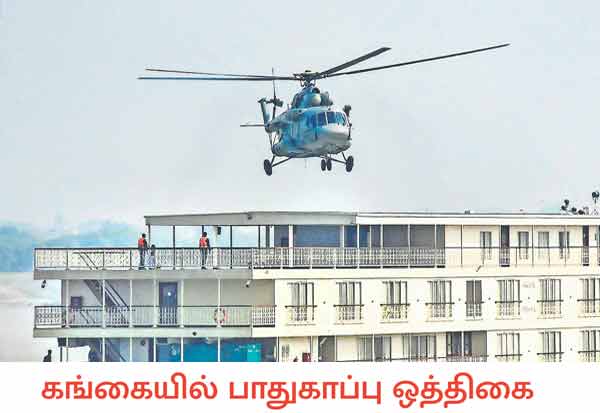 உத்தர பிரதேசத்தின் வாரணாசியில உள்ள கங்கை ஆற்றில், ஹெலிகாப்டர் மூலம் பாதுகாப்பு ஒத்திகையில் ஈடுபட்ட என்.எஸ்.ஜி., எனப்படும் தேசிய பாதுகாப்பு படையினர்.