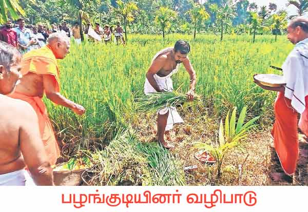 நீலகிரி மாவட்டம் கூடலூர் புளியம்பாறை பகுதியில் நடந்த அறுவடை திருவிழாவை முன்னிட்டு, நெற்கதிர் அறுவடையில் ஈடுபட்ட பழங்குடியினர்.