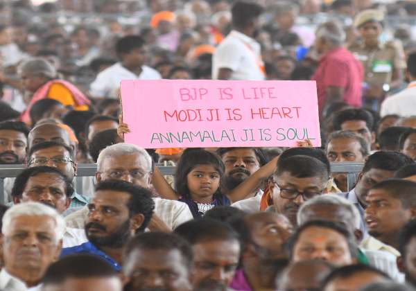 கோவை மேட்டுபாளையம் அருகே நடந்த பா.ஜ., தேர்தல் பொதுக் கூட்டத்தில் கலந்து கொண்ட பிரதமர் மோடிக்கான உற்சாக வரவேற்பு.