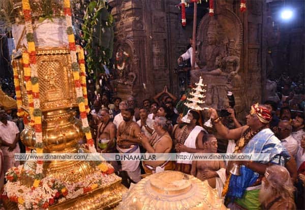 மதுரை மீனாட்சி அம்மன் கோயில் சித்திரை திருவிழா கொடியேற்றப்பட்டு தீபாராதனை காட்டப்பட்டது.