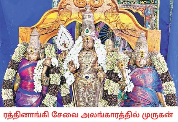 காஞ்சிபுரம், வல்லக்கோட்டை முருகன் கோவிலில், கோ பூஜை மற்றும் சிறப்பு பூஜைகள் நடந்தன. தொடர்ந்து உற்சவர் முருகன் ரத்தினாங்கி சேவை அலங்காரத்தில் பக்தர்களுக்கு அருள்பாலித்தார்.