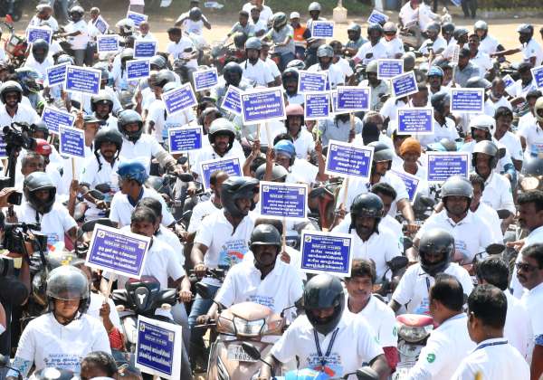லோக்சபா தேர்தலில் 100 சதவீத ஓட்டு பதிவை வலியுறுத்தி, இருசக்கர வாகன பேரணி நடந்தது. இடம்: சென்னை