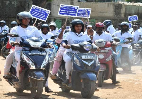 லோக்சபா தேர்தலில் 100 சதவீத ஓட்டு பதிவை வலியுறுத்தி தேர்தல் ஆணையம் சார்பில் பொதுமக்களுக்கு விழிப்புணர்வு ஏற்படுத்தும் வகையில் சென்னை, கோடம்பாக்கத்தில் இருசக்கர வாகன பேரணி நடந்தது.