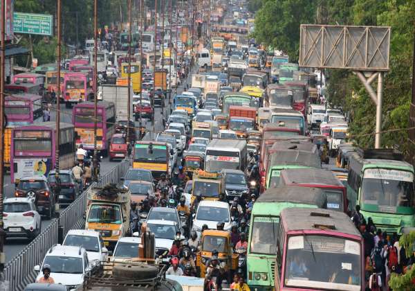 வட மாநிலங்களில் கொண்டாடப்படும் சத் பூஜை எனப்படும் சூரிய வழிபாடு பண்டிகையை கொண்டாட, வெளியூர்களில் இருந்து சொந்த ஊர் திரும்பியவர்களால் ஏற்பட்ட போக்குவரத்து நெரிசல். இடம்: பாட்னா, பீஹார்.