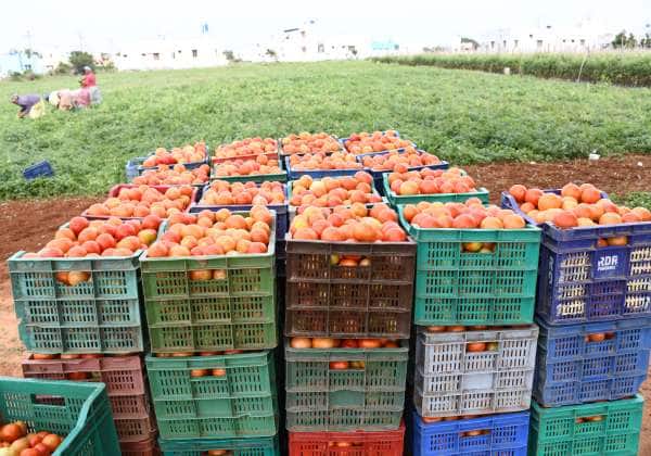 விற்பனைக்கு கொண்டு செல்வதற்காக விவசாயிகள் தக்காளி செடிகளிலிருந்து பறிக்கப்பட்ட பழங்கள் தரம் பிரித்து பெட்டிகளில் அடுக்கி வைக்கப்பட்டுள்ளன.இடம். உடுமலை.