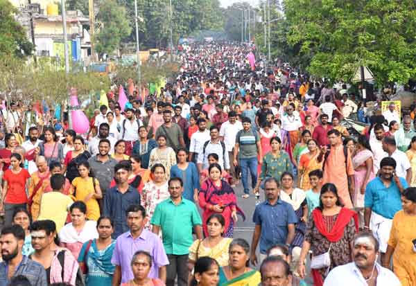 சித்ரா பவுர்ணமியையொட்டி திருவண்ணாமலையில் கிரிவலம் செல்லும் பக்தர்களின் கூட்டம்.