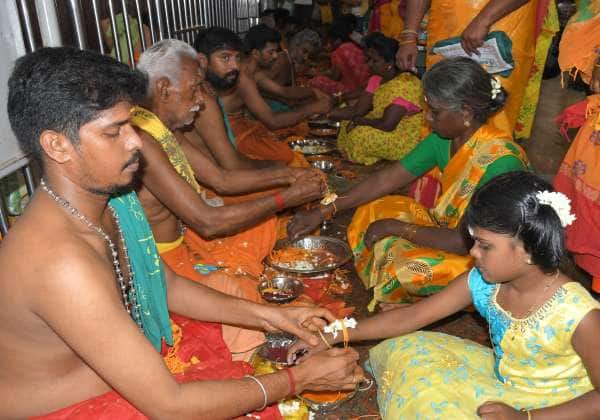 சித்திரை திருவிழாவை முன்னிட்டு வீரபாண்டி கவுமாரியம்மன் கோயிலில் காப்பு கட்டி விரதம் துவக்கிய பக்தர்கள்.