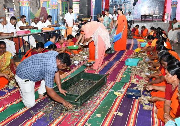 திருப்பூர், விஸ்வேஸ்வரர் கோவிலில் உண்டியல் காணிக்கை எண்ணும் பணி நடந்தது.