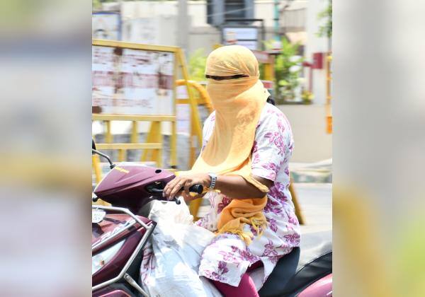 கோடை வெயிலுக்கு முகத்தை மறைத்து தான் போகனும். இடம்: திருப்பூர், குமரன் ரோடு.