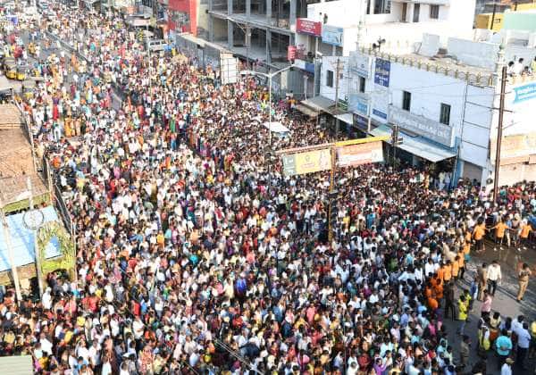 உடுமலை மாரியம்மன் கோவில் தேர் திருவிழாவை பார்க்க வந்த பக்தர்கள் கூட்டம்.