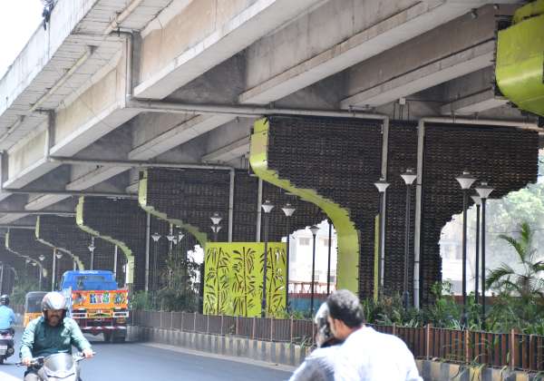 பராமரிப்பு இல்லாமல் காணப்படும் சுவர் பூங்கா. இடம் : சென்னை, திருமங்கலம் மேம்பாலத்தின் கீழ் பகுதி