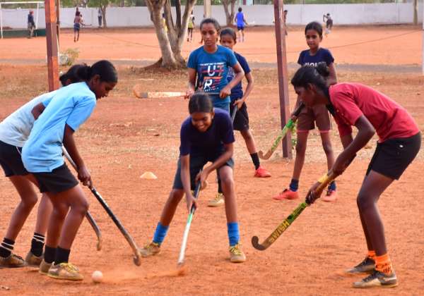 சிவகங்கை மாவட்ட விளையாட்டு மைதானத்தில் பெண்களுக்கான ஹாக்கி போட்டிக்கான இலவச பயிற்சி நடந்தது.