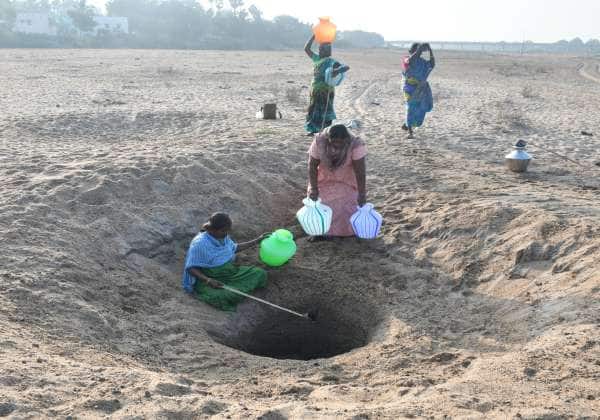 தூத்துக்குடி மாவட்டம் விளாத்திகுளம் பகுதியில் குடிநீர் தட்டுபாடு ஏற்பட்டுள்ளதால் வைப்பாறு மணற்பரப்பில் குழி தோண்டப்பட்டு அதில் வரும் ஊத்து தண்ணீரை குடிக்க எடுத்துச்செல்லும் அப்பகுதி மக்கள்.