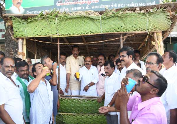 பொள்ளாச்சி எம்.எல்.ஏ., அலுவலகம் அருகே அ.தி.மு.க., சார்பில் நீர், மோர் பந்தல் திறக்கப்பட்டது.