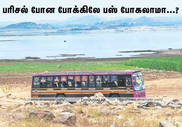 மேட்டூர் அணையின் நீர் இருப்பு கடந்த ஆண்டு இதே நாளில்( மே01), 101 அடியாக இருந்தது. இந்த ஆண்டு, 53 அடியாக குறைந்துவிட்டது. வரலாறு காணாத வெயிலும், வறட்சியுமே காரணம். அணையின் குறுக்கே பரிசல் மூலம் பக்கத்து ஊர்களுக்கு சென்று வந்த மக்களுக்காக, தற்போது அணைக்குள்ளேயே அரசு பஸ் போக்குவரத்து நடைபெறுகிறது.