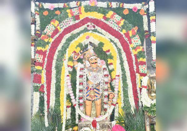 சித்திரை பொங்கல் விழாவை முன்னிட்டு சிறப்பு அலங்காரத்தில் அருள்பாலித்த கருப்பசாமி. இடம்: திருப்பூர்