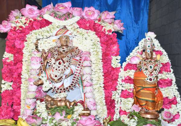 விழுப்புரம் வைகுண்டவாச பெருமாள் கோவிலில் உற்சவர் ஸ்ரீதேவி பூதேவி வைகுண்டவாச பெருமாள் சீனிவாச அலங்காரத்தில் சகஸ்ரதீப ஊஞ்சல் சேவையில் எழுந்தருளி பக்தர்களுக்கு அருள் பாலித்தார்.