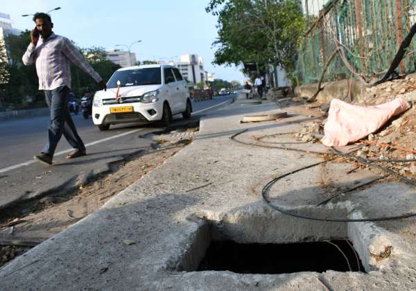 மழைநீர் கால்வாய் பணிகள் முடிந்தும் மூடப்படாமல் உள்ளது இதனால் பாதசாரிகள் உள்ளே விழும் ஆபாயம் உள்ளது.இடம் : ஆயிரம் விளக்கு மெட்ரோ அருகில், அண்ணா சாலை.