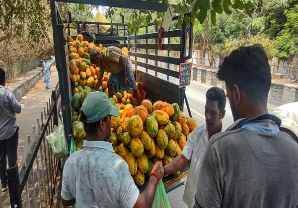 வெளி மாவட்டத்தில் இருந்து விற்பனைக்கு கொண்டுவரப்பட்ட பப்பாளி பழங்கள் ஜோராக விற்பனை நடந்தது இடம். புதுச்சேரி ஜிப்மர் மருத்துவமனை எதிரில்.