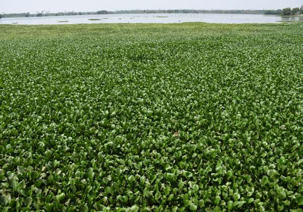 கோவை சிங்காநல்லூர் குளத்தை ஆக்கிரமித்துள்ள ஆகாய தாமரை செடிகள்.