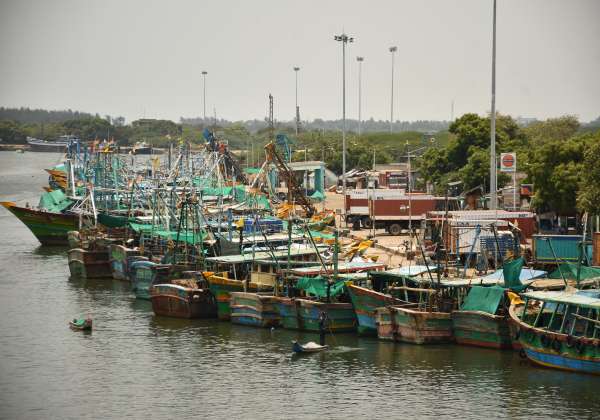 மீன்பிடி தடைக்காலம் எதிரொலியாக கடலூர் மீன் பிடி துறைமுகத்தில் மீனவர்கள் படகுகளை வரிசையாக நிறுத்தி வைத்துள்ளனர்