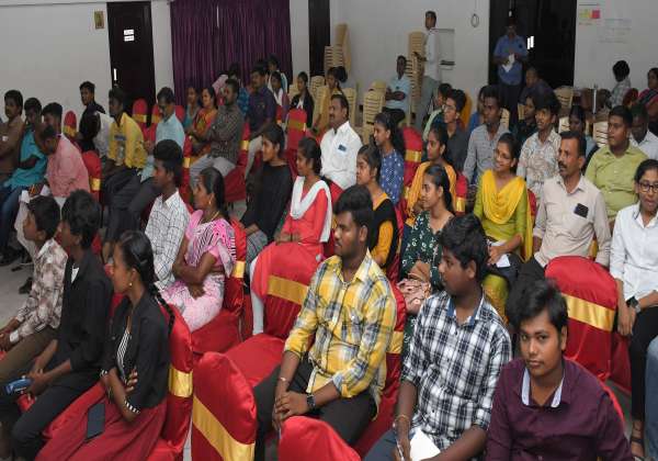 தேனியில் மதுரை சுப்பலட்சுமி லட்சுமிபதி காலேஜ் ஆப் சயின்ஸ் சார்பில் நடந்த பிளஸ்2 முடித்த, கல்லூரி இறுதியாண்டு மாணவர்களுக்கான ஜெயித்துக் காட்டுவோம் நிகழ்ச்சியில் பங்கேற்றவர்கள்.