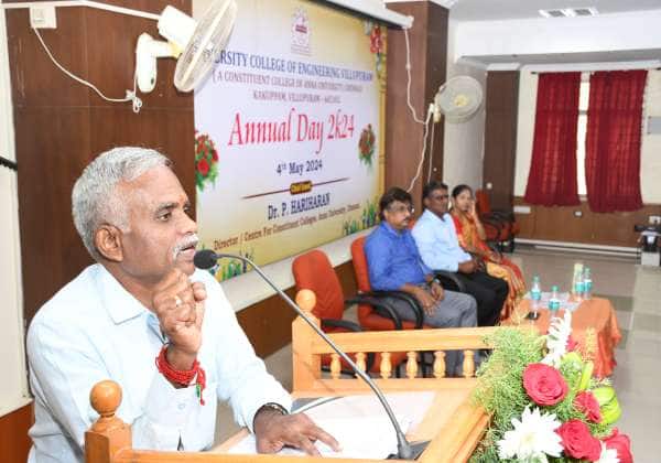 விழுப்புரம் அண்ணா பல்கலைக்கழக பொறியியல் கல்லூரி நடந்த ஆண்டு விழாவில் இயக்குனர் ஹரிஹரன் பேசினார். அருகில் கல்லூரி முதல்வர் செந்தில்.