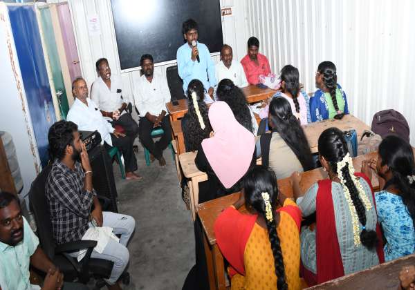 விழுப்புரம் அரிஸ்டாட்டில் அகாடமியில் இலவச நீட் பயிற்சி வகுப்பு நிறைவு விழாவில் நிறுவனர் வினித் பேசினார்.